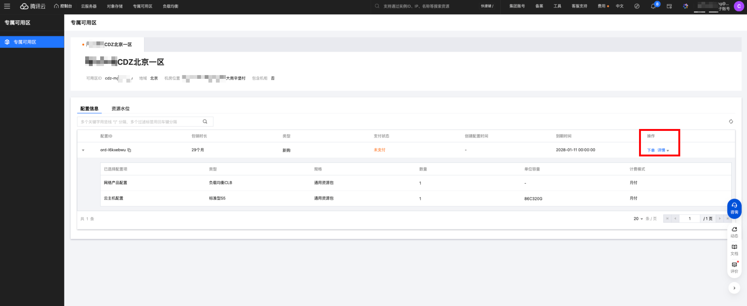 专属可用区(CDZ)采用包销预付费购买模式,您直接与腾讯云签约,按实际资源需求购买3-5年期的资源包。