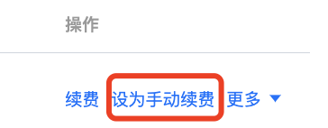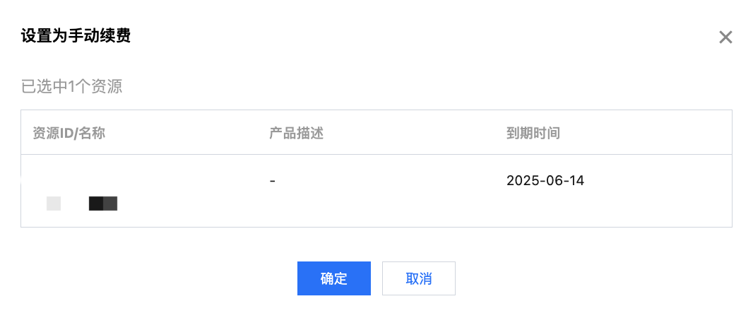 3. 取消自动续费:单击设为手动续费,在弹出的窗口确认产品信息,确认无误后,单击确定。