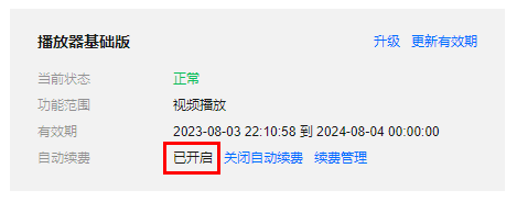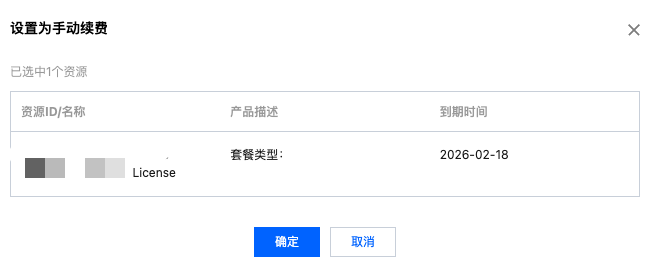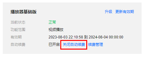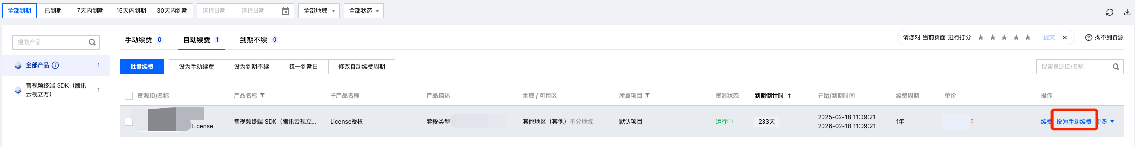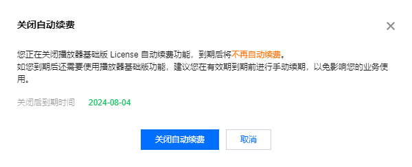 1. License 的自动续费在“已开启状态”下可单击关闭自动续费,到期后将不再自动续费。