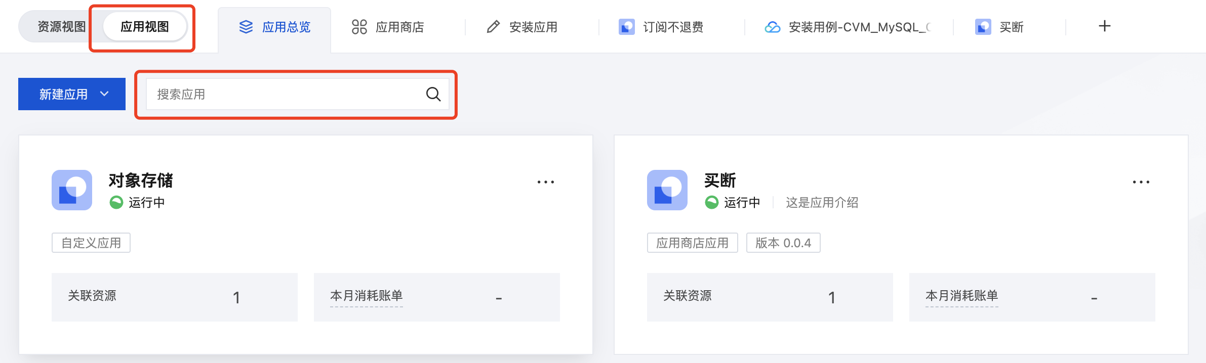 2. 在搜索框输入应用名称,即可找到应用。点击卡片可进入应用看板进一步查看、管理。