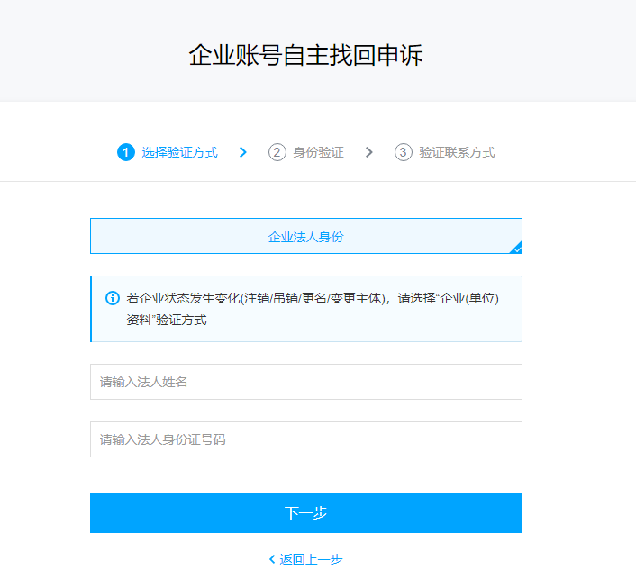 企业认证账号登录账号时需要身份校验,但校验方式忘记或不可用,怎么办?