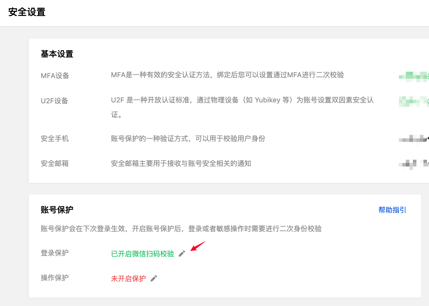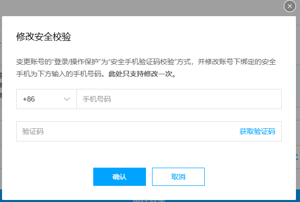 3.5.4 在修改安全校验页面,可变更账号的“登录/操作保护”为“安全手机验证码校验”方式,并修改账号下绑定的安全手机为下方输入的手机号码。
