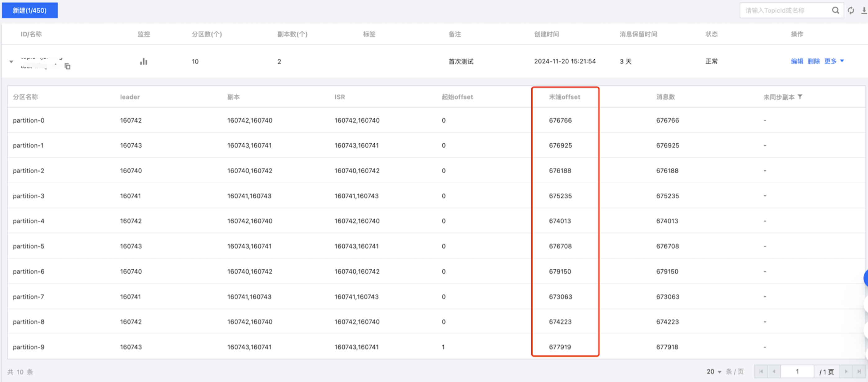 1. 进入 控制台,单击实例列表 > ID/名称 > Topic 列表,查看对应 Topic 相关分区末端 offset 是否会更新。