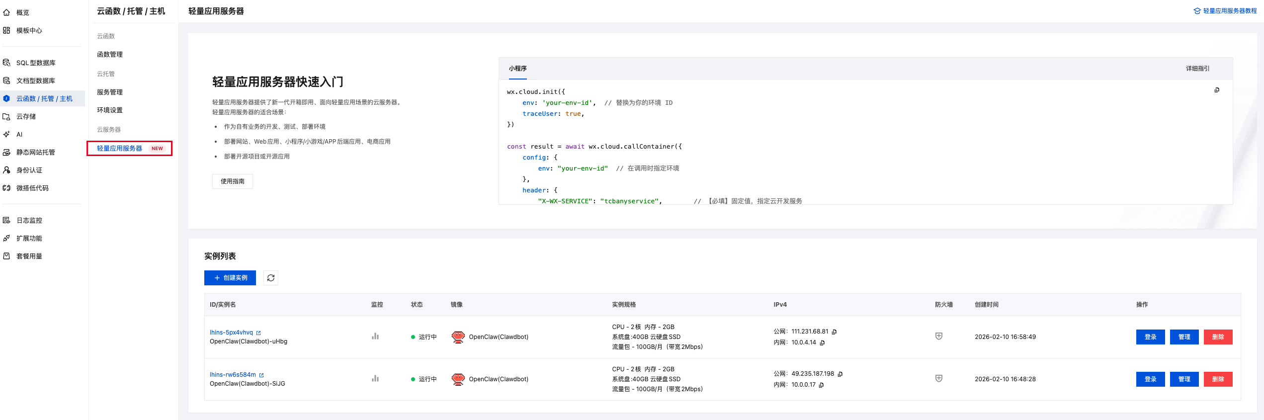 云开发轻量应用服务器:开箱即用、面向轻量应用场景的云服务器。