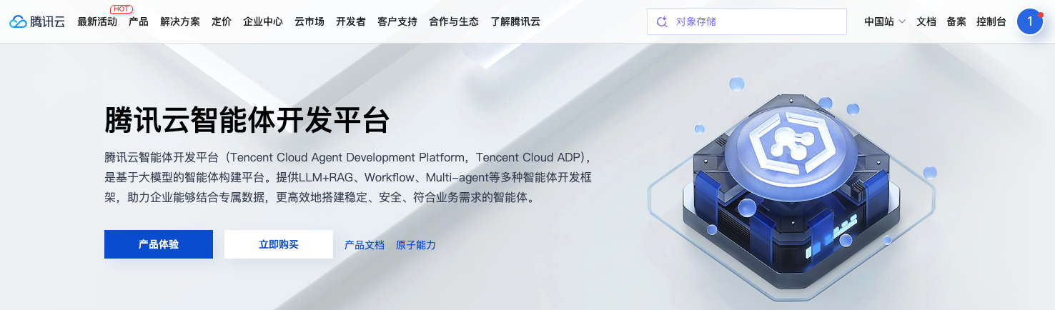 2. 如未开通产品体验,需要先注册腾讯云账号,进入智能体开发平台 产品介绍页(如下图),单击产品体验并开通产品,即可登录使用。
