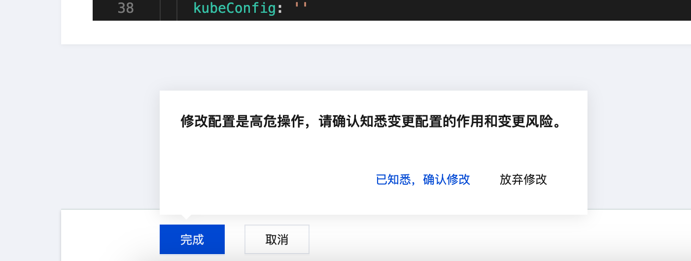 5. 单击完成。修改全局配置是高危操作,请确认知悉变更配置的作用和变更风险!