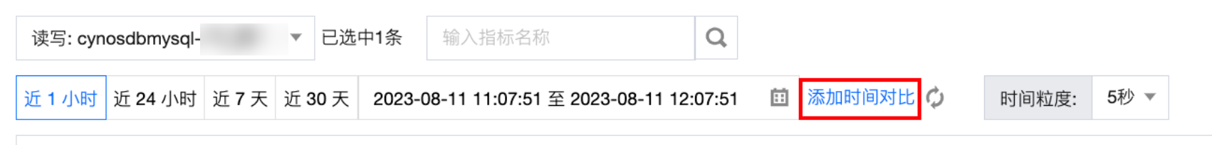 5. 在监控告警页的自定义时间框后单击添加时间对比。