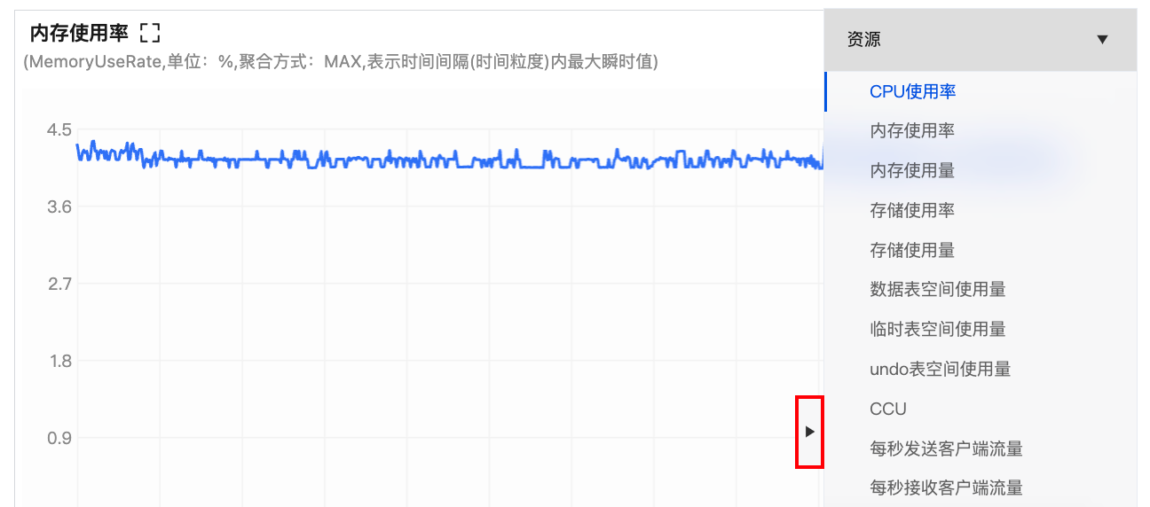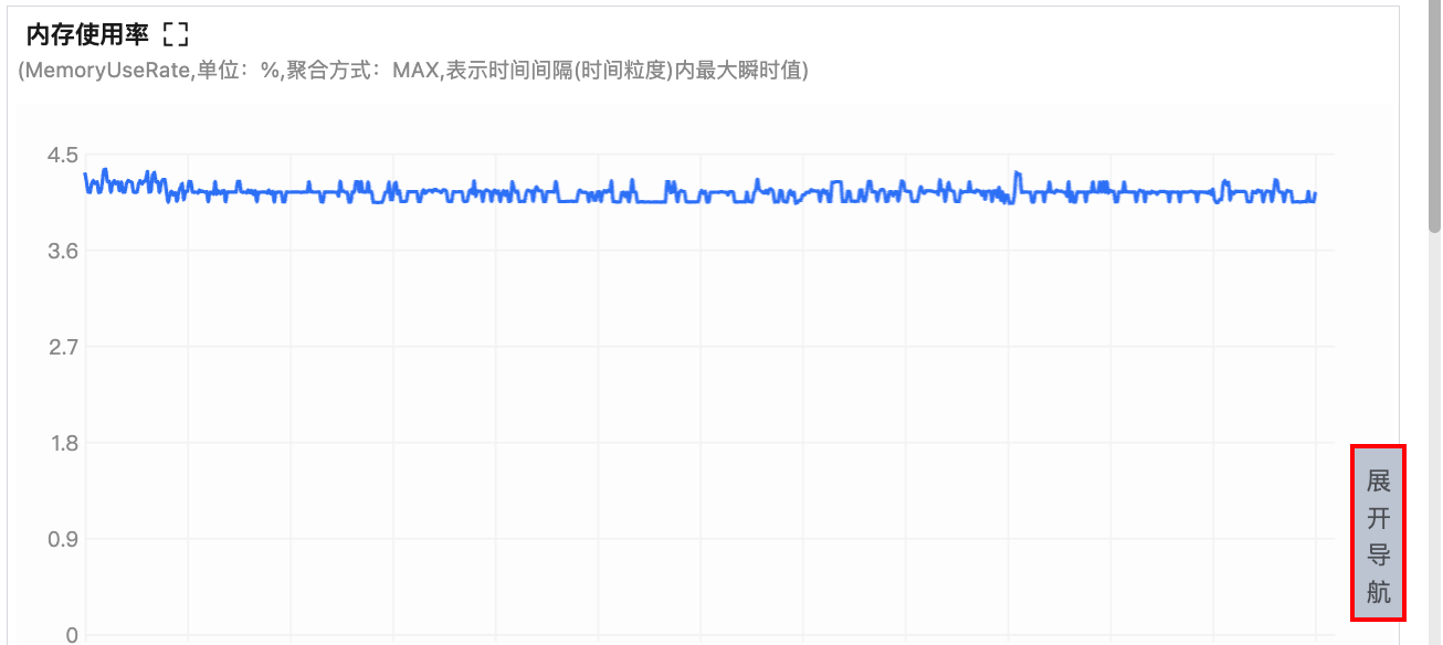 您可以隐藏和展开监控指标的导航,展开时,您可以通过单击对应监控指标,快捷查询该指标的监控情况,隐藏时,您可以获得更全的监控视图。