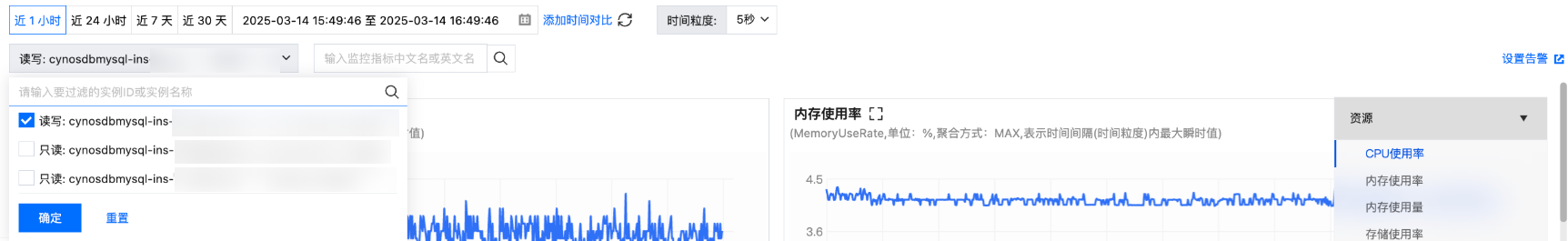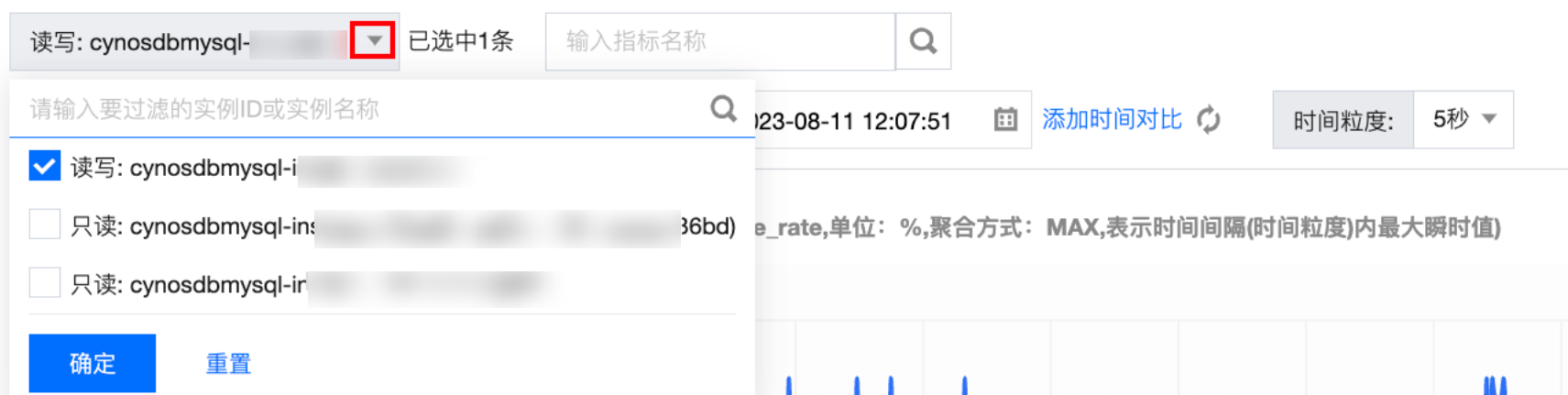 3. 在集群管理页选择监控告警,单击下拉键选择目标实例(支持单选和多选),单击确定。