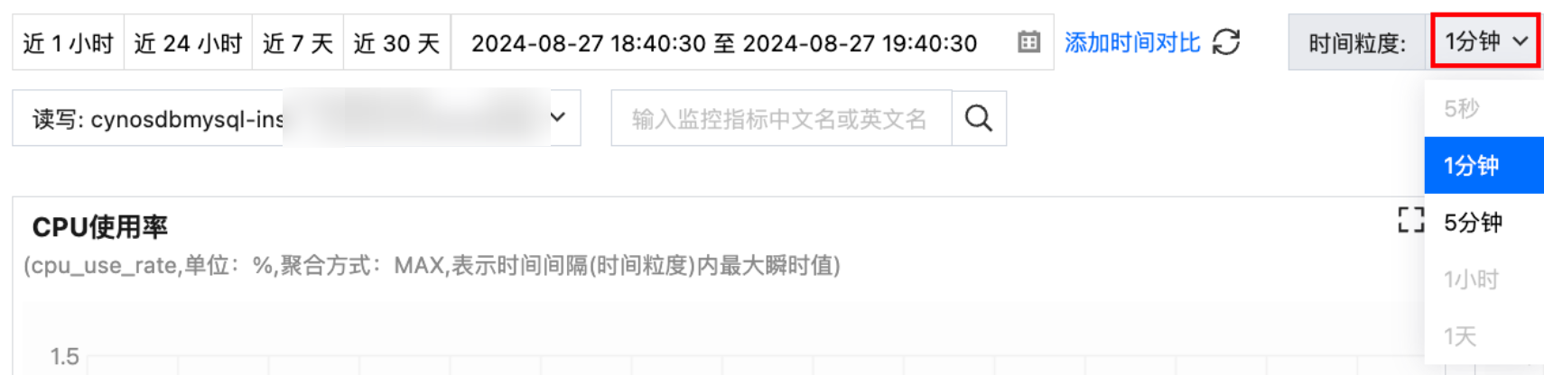 支持对监控数据设置查询的监控粒度,便于您在所选时间范围内查询不同统计粒度下的监控情况。