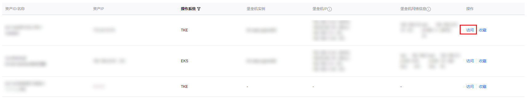 3. 在容器资产列表页面,单击对应容器资产右侧的访问,弹出访问窗口。