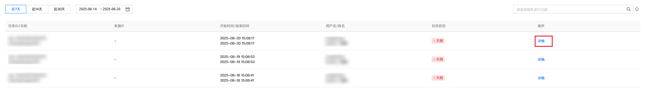 在运维任务执行记录页面,单击对应任务记录右侧的