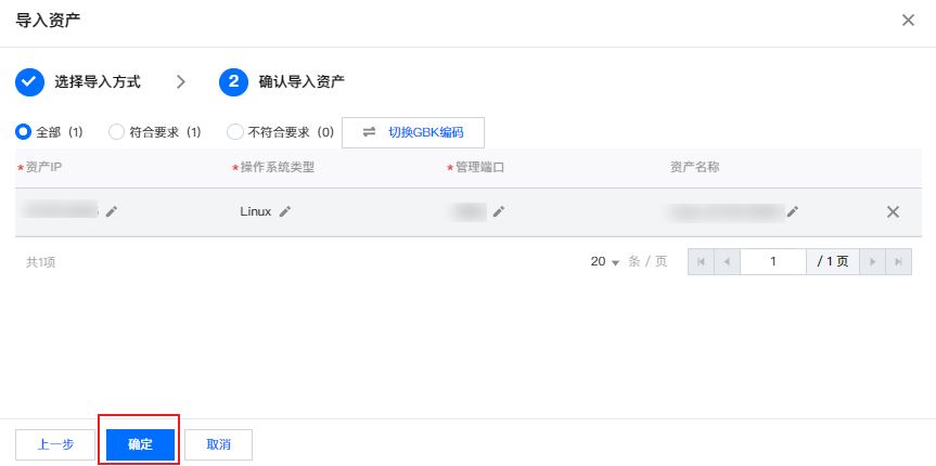 5. 配置信息填写完后单击下一步,进入 “确认导入资产” 环节。
