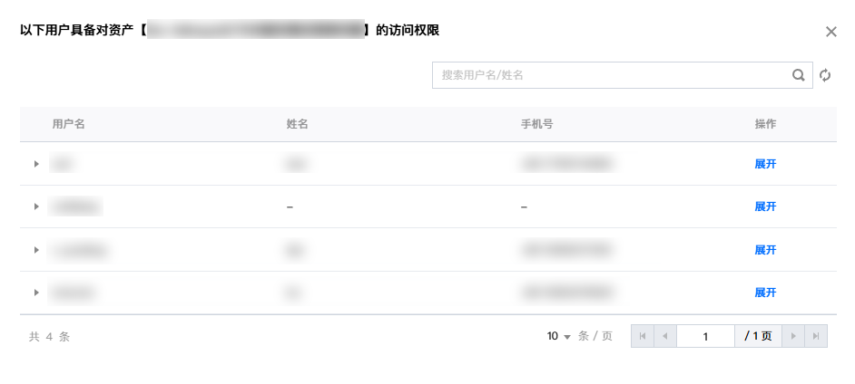 在“访问权限”窗口,可以查看可访问该资产的用户。