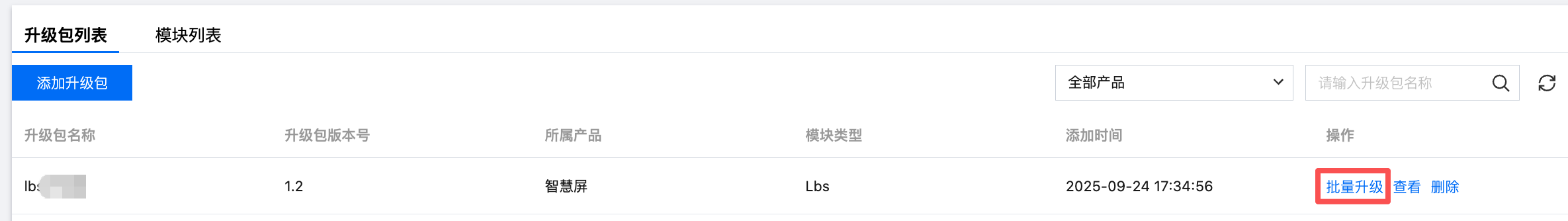 1. 在升级包列表右侧点击查看按钮进入升级包详情。