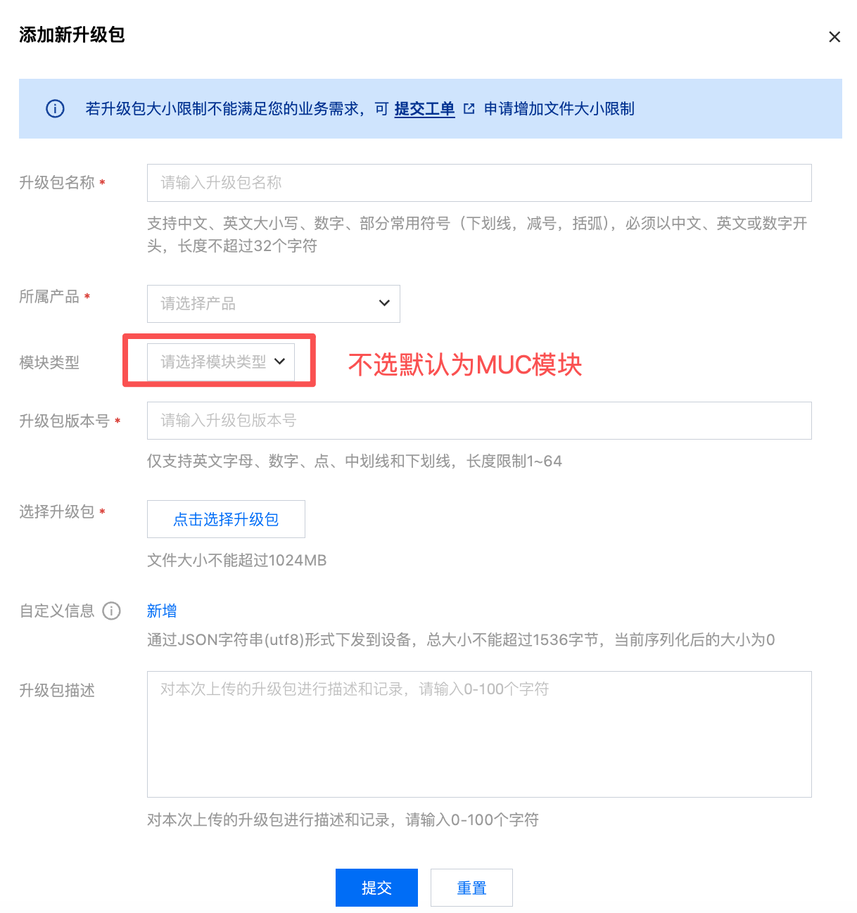 升级包名称 | 支持中文、英文大小写、数字、部分常用符号(下划线,减号,括弧),必须以中文、英文或数字开头,长度不超过32个字符。 |