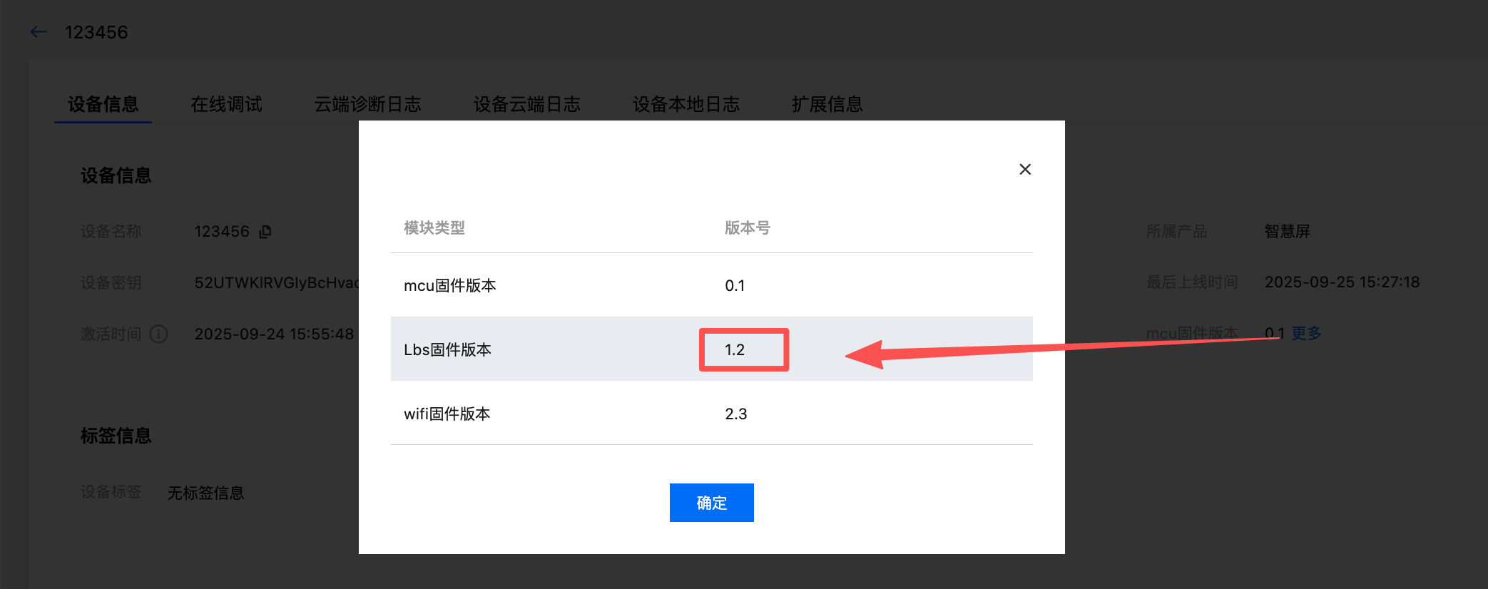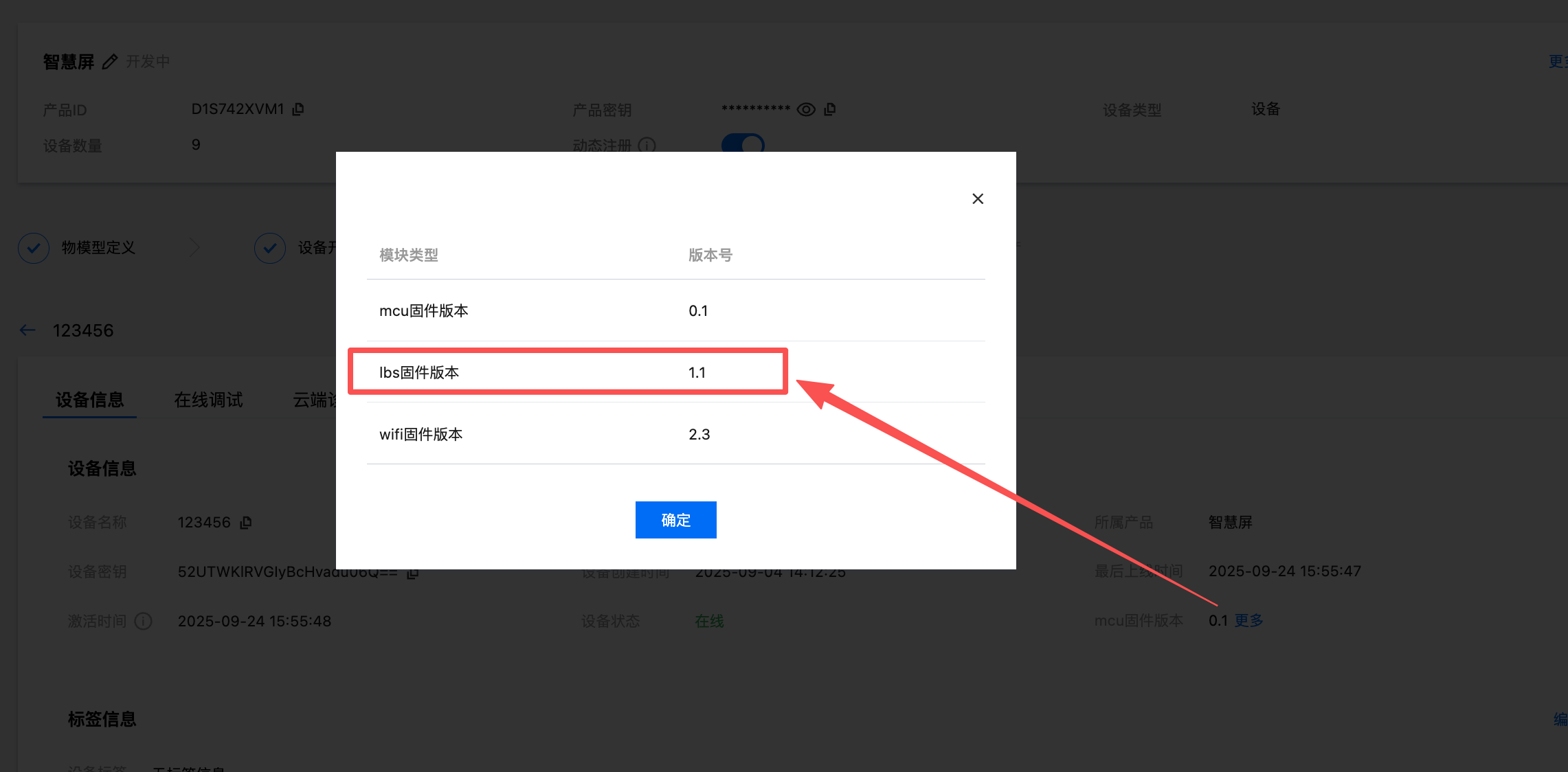 设备端完成OTA升级后,设备端会自动推送最新的版本信息到平台。