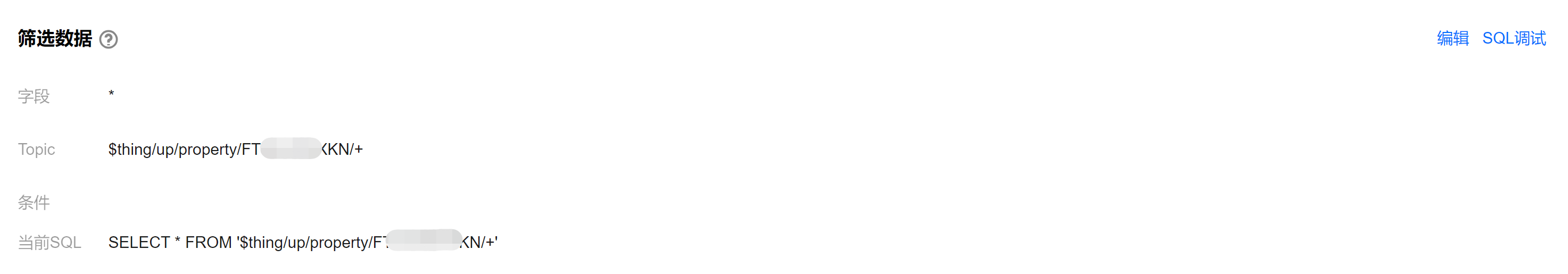 字段:输入"*" ,表示将设备上报的所有 JSON 数据进行转发。