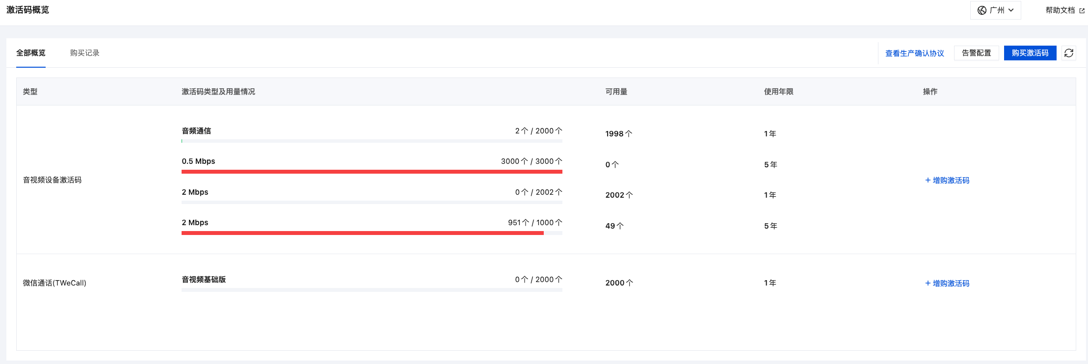 成功激活的前提是对应规格的微信通话(TWeCall)激活码可用量大于0。例如您的音视频类设备若集成了微信通话(TWeCall)服务,快到1年有效期时,您评估您的用户可能还会继续使用,则需要先购买对应规格微信通话(TWeCall)激活码,然后通过 激活 TWeCall 云 API 接口对指定设备激活即可完成续期。