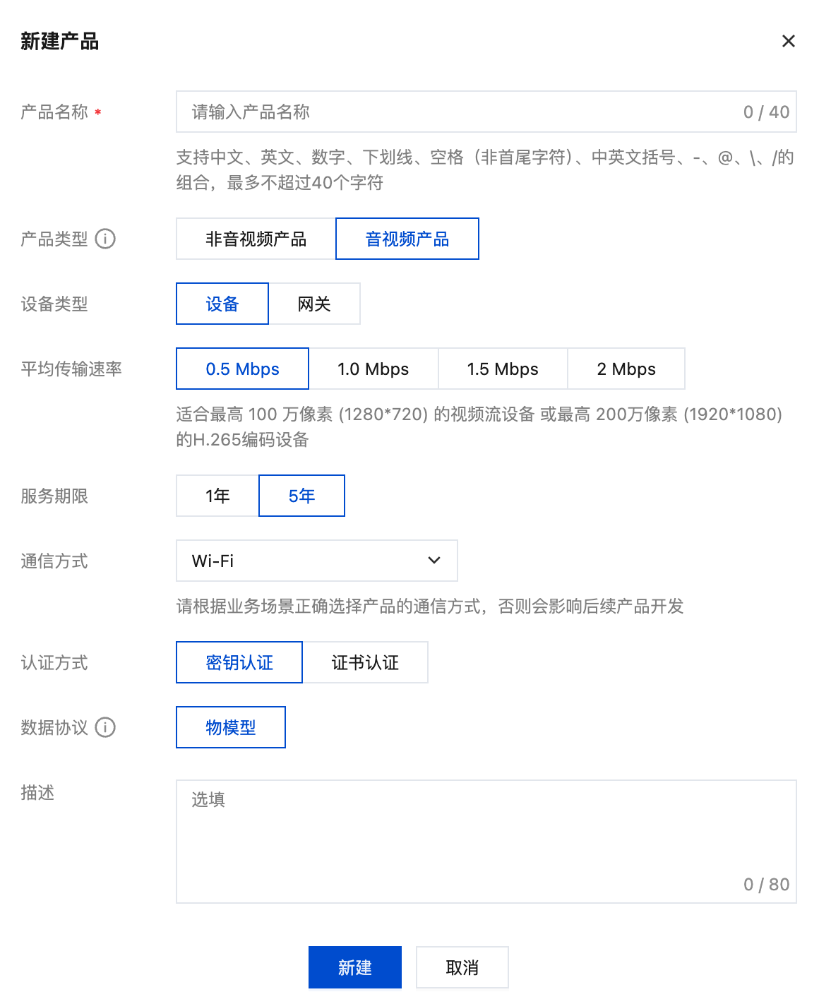 请注意您所购买的音视频激活码规格,选择对应的规格进行产品创建。如果您需要使用 TWeTalk 基础版或高级版,请购买音频激活码或音视频激活码;如果您需要使用 TWeTalk 多模态版本,请购买音视频激活码。