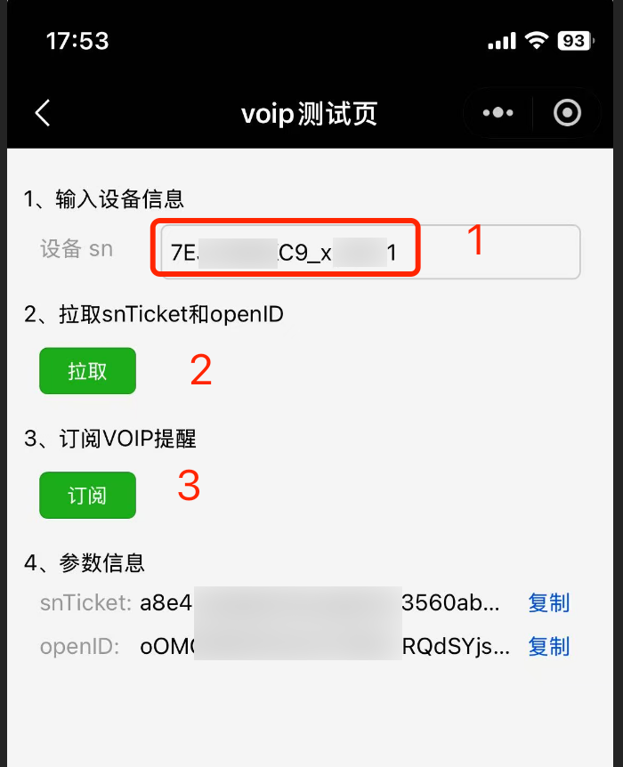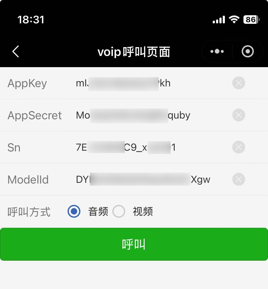 设备 SDK 填入被呼叫小程序的相关信息和 openID