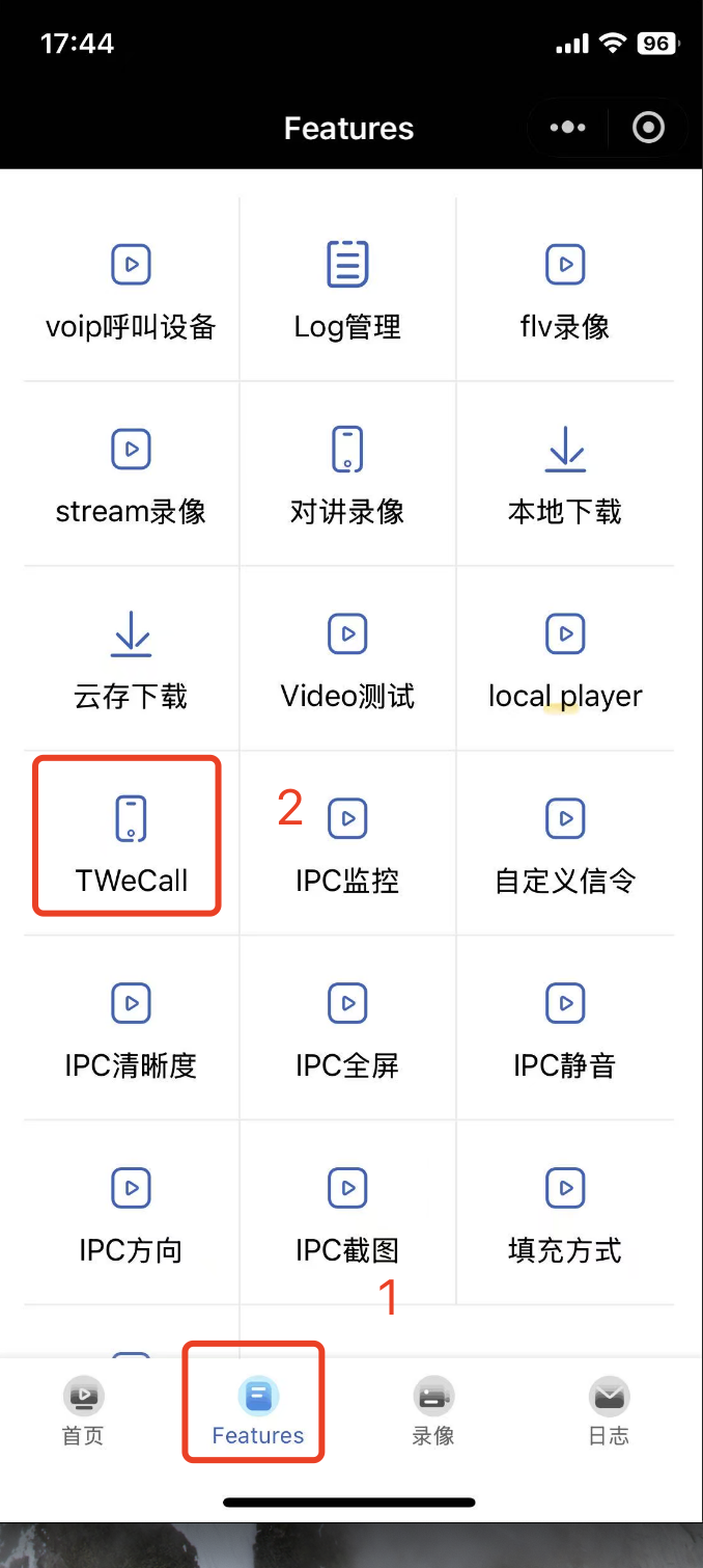1. 进入小程序,选中底部的 Features,然后单击 TWeCall。