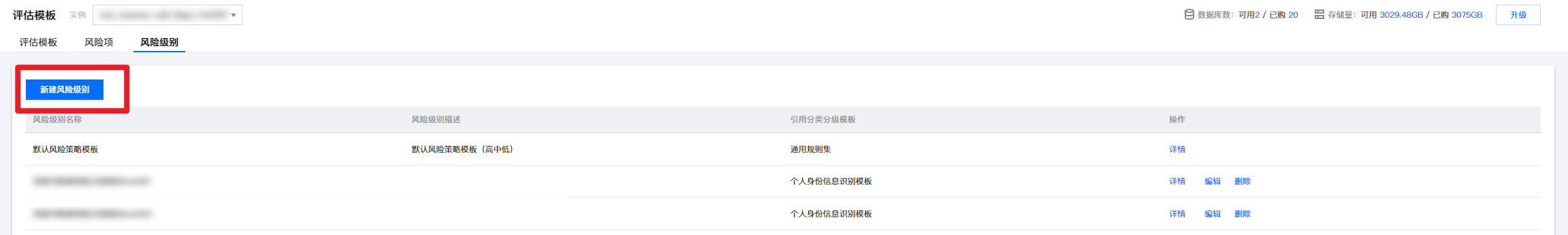 3. 在评估模板页面,单击风险级别 Tab 栏。