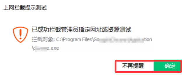 选择是:客户端弹窗将会展示“不再提醒”按钮,用户单击后当日内不再展示上网拦截弹窗。