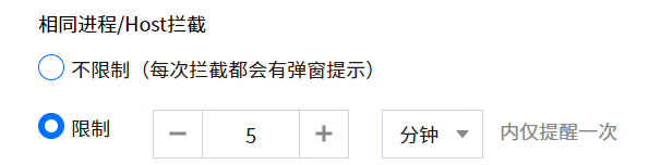 3. 支持对相同进程/Host 弹窗拦截频率进行设置。