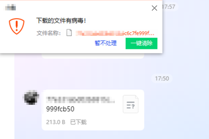 2. 当存在下载文件或危险文件时,客户端弹窗示例: