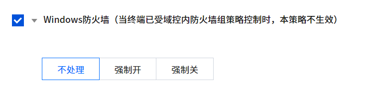 当终端已受域控内防火墙组策略控制时,本策略不生效(入域的终端配置此策略不生效)。