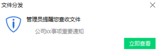 桌面公告 | 支持下发常驻公告、弹窗公告,便于员工在公告投放期间获悉公告内容。 常驻公告:公告浮窗将在投放时间内始终展示于终端桌面右上角,常驻公告样式示例: ![]() 弹窗公告:将即时下发至用户端桌面右下角,投放时间内每台设备仅触发一次,用户可确认关闭。弹窗公告样式示例: ![]() |