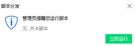 脚本分发 | 功能:支持从本地选择脚本进行上传,可编辑脚本名称、备注及运行参数。 支持 bat、cmd、vbs、js、exe 类型脚本。 用户权限:在终端所登录的用户态权限下执行脚本或者应用。 系统权限:在系统权限(session0)下执行脚本或者应用。 平台分发脚本后,客户端会下载并执行该脚本,脚本的执行结果取决于终端环境及脚本内容。 脚本执行的注意事项: powershell 脚本仅支持在 win7 及以上系统运行。 macOS 支持 .sh 格式文件和可执行文件。 脚本编写建议。 脚本名称不包含空格、特殊字符(_除外)或任何非英文字符。例如:一个有效的脚本名称"update_database_2023.sh"。 macOS 脚本若涉及到文件保存,推荐保存到/tmp目录中并使用完整路径。pwd:为 iOA 程序包内部目录,切记不要使用"./"。 macOS 脚本编写需注意芯片以及运行架构的区分。arch:arch默认参数为"x86_64"。如果需要区分Apple芯片,请在命令行中指定运行模式,例如:arch -arm64 sudo installer -pkg /tmp/xxx.pkg -target /。 脚本分发客户端弹窗样式示例: ![]() 分发至终端的脚本查看路径: Windows:C:\\Users\\Administrator\\AppData\\Local\\Temp(Administrator是系统账户,根据终端实际系统账户路径查看)。 macOS:/Library/Application Support/QQPCiOA/DistributeDocument/bash |