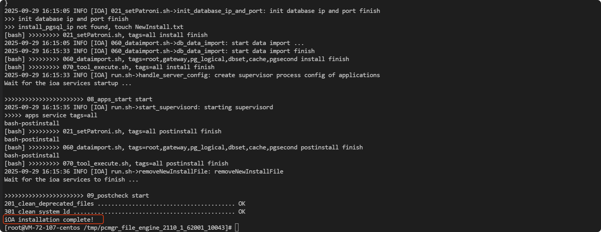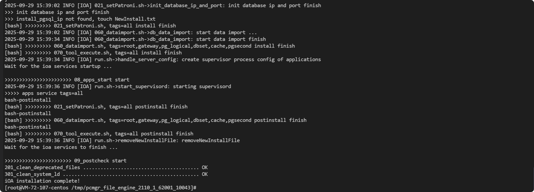 6. 安装完成,核心服务初始化成功,关键组件部署就绪。