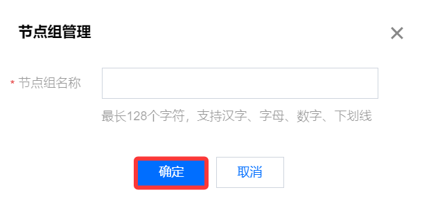 4. 在节点组管理窗口中,设置节点组名称后,单击确定保存。