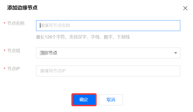 节点 IP | 填写部署边缘节点服务器的 IP。 |