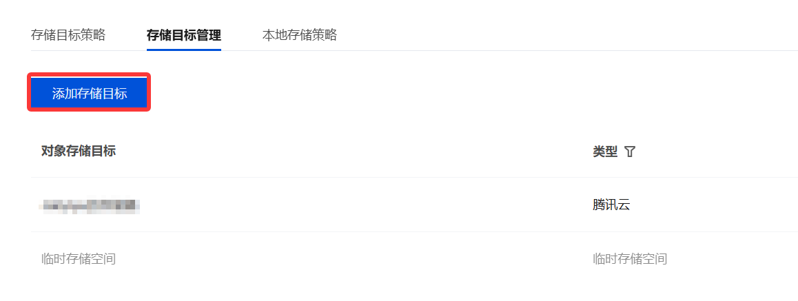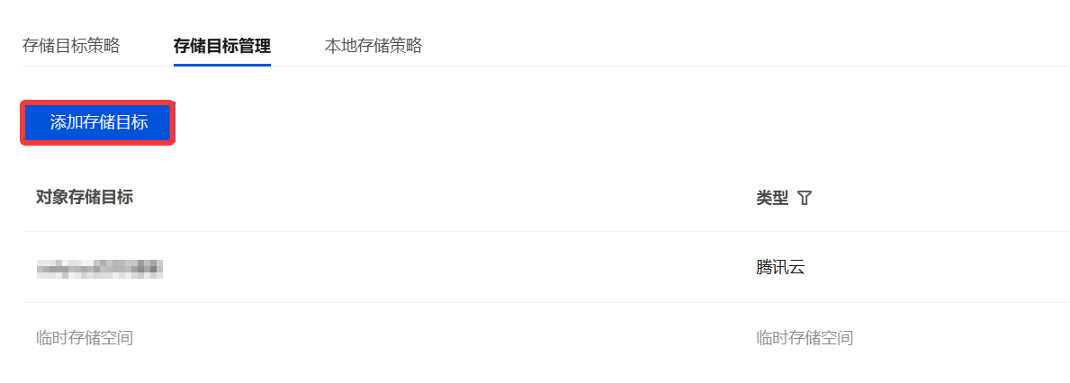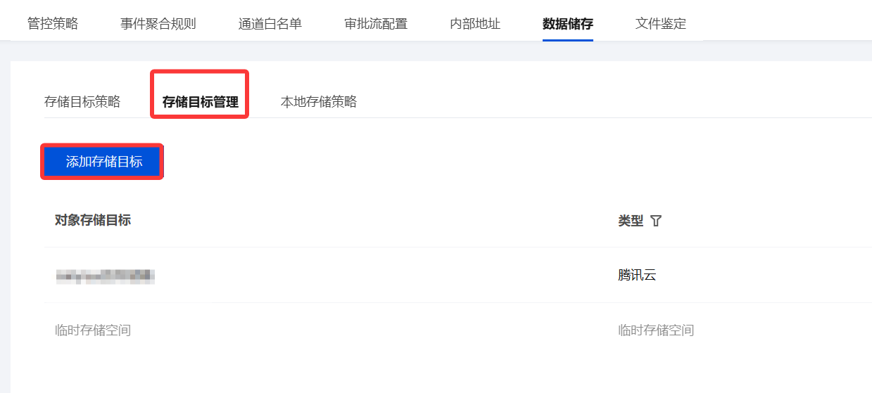 2. 在数据存储页面,选择存储目标管理,单击添加存储目标。
