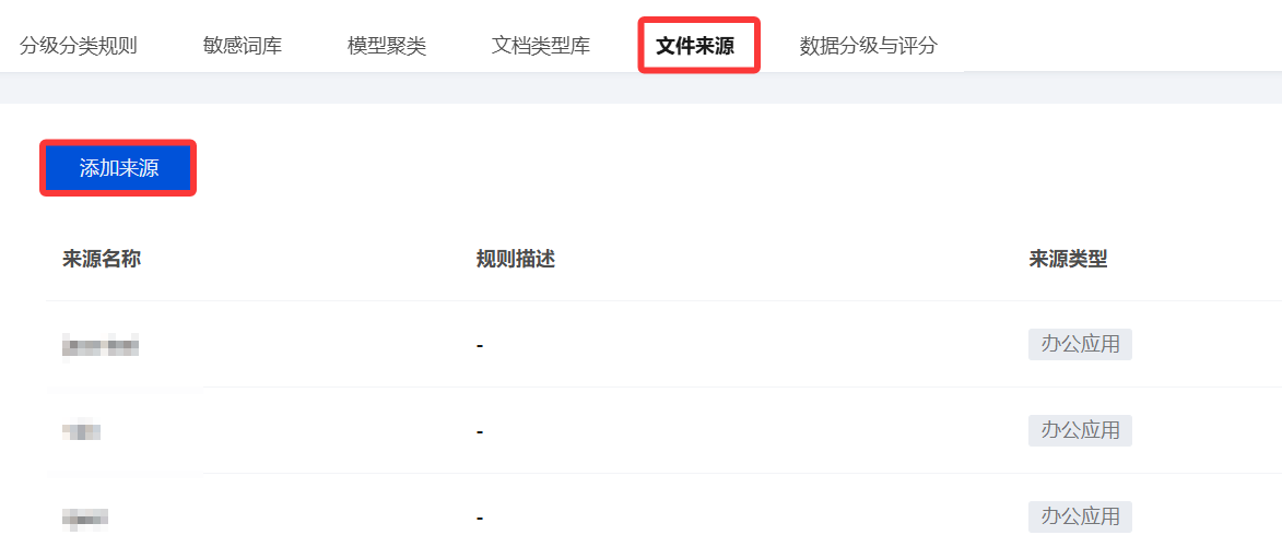 1. 登录 iOA 零信任管理平台控制台,在左侧导航栏,选择数据分级分类 > 文件来源。
