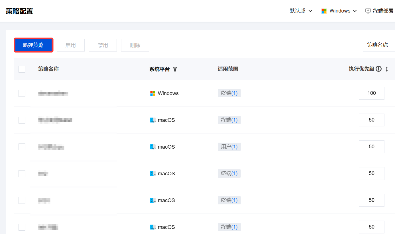 2. 在服务管控页面,单击新建策略。
