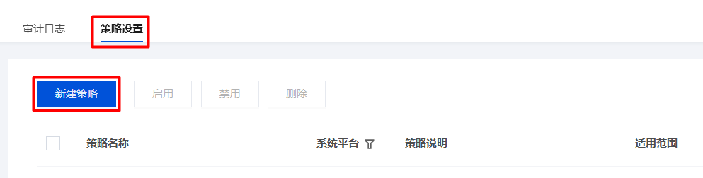2. 在安装管控页面,选择策略设置,单击新建策略。
