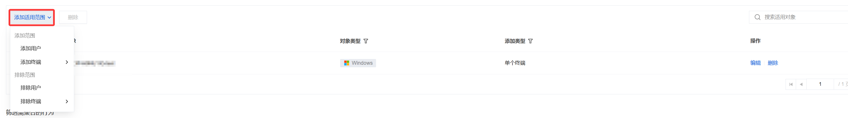 适用范围:该策略生效的对象范围。单击添加适用范围,勾选需管控/排除的用户/终端,单击确定。
