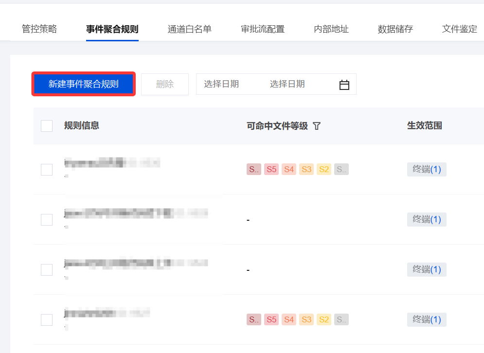1. 在 事件聚合规则页,单击新建事件聚合规则。