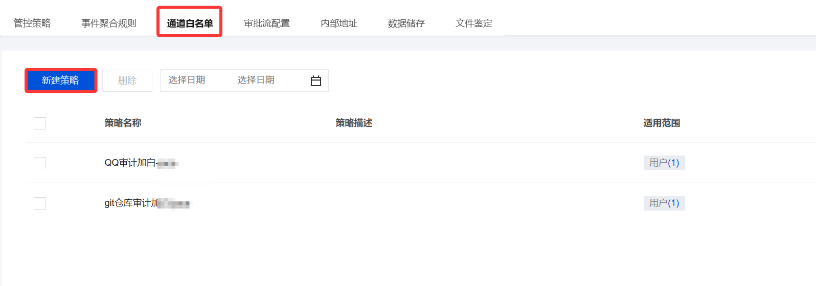 添加到通道白名单后,将根据配置的生效范围加白。例如:配置“拦截加白”时,则不进行拦截,仍审计。