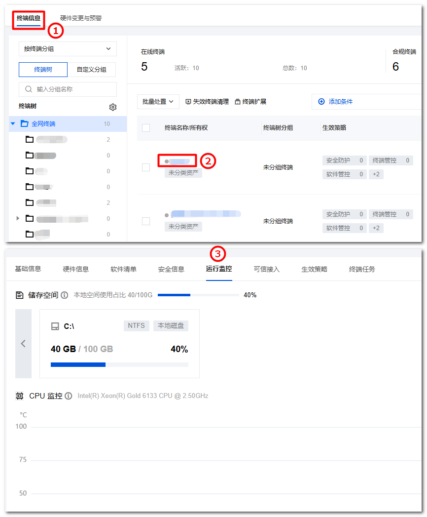 开启「客户端管理-客户端策略-客户端通用设置」中的终端运行状态监测开关并重启设备后,终端将每五分钟一次更新数据。