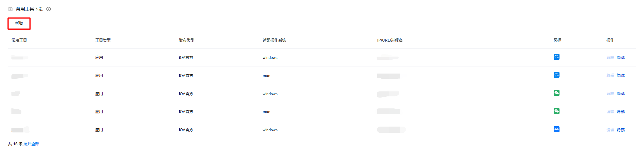3. 在常用工具下发模块中,单击新增。
