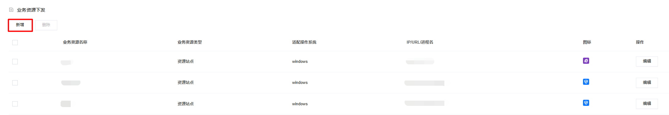 1. 在业务资源下发模块中,单击新增。