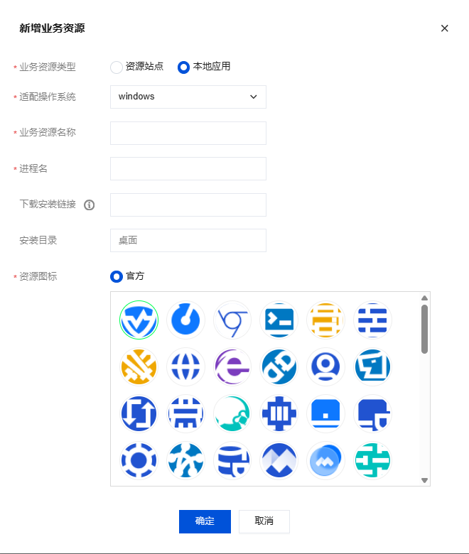 | 资源图标 | 由官方提供,所选图标将展示在客户端中。 |