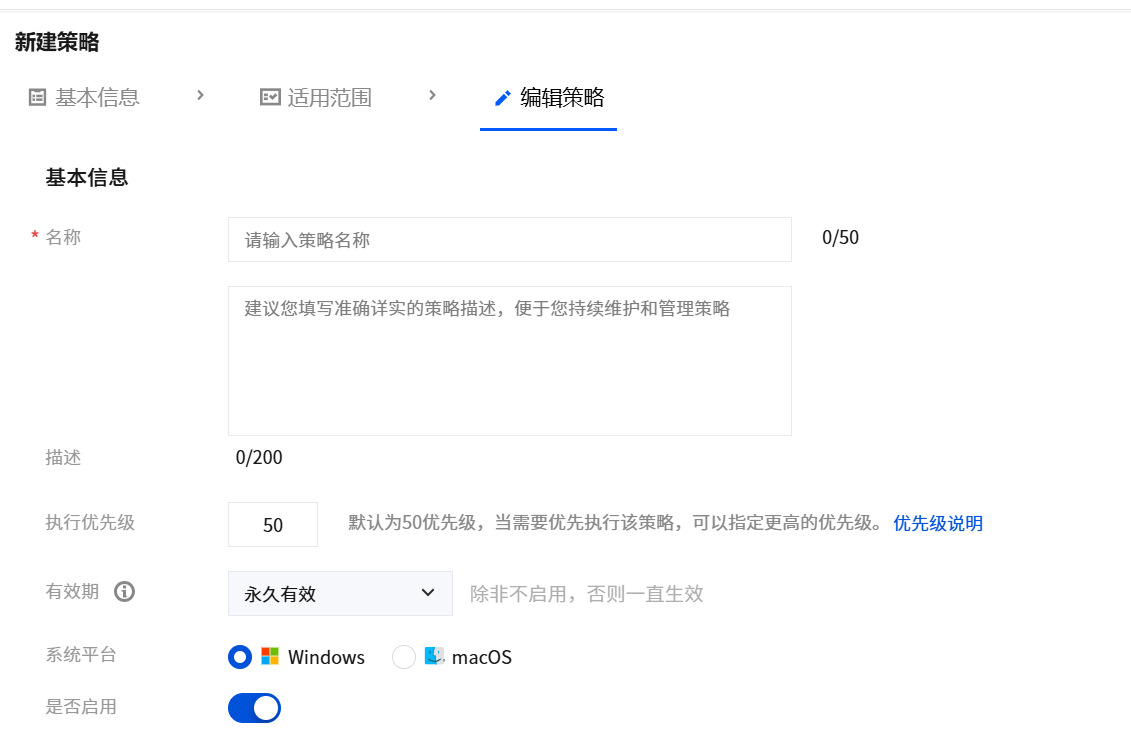 3. 在策略配置页面,单击新建策略,配置相关参数。