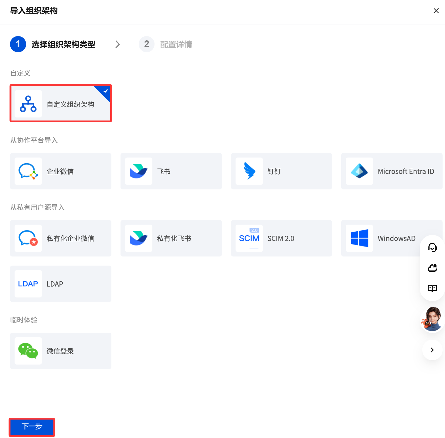 若企业用户目录下,不存在其他非微信和非自建的目录,企业默认认证策略则设为“微信扫码”。
