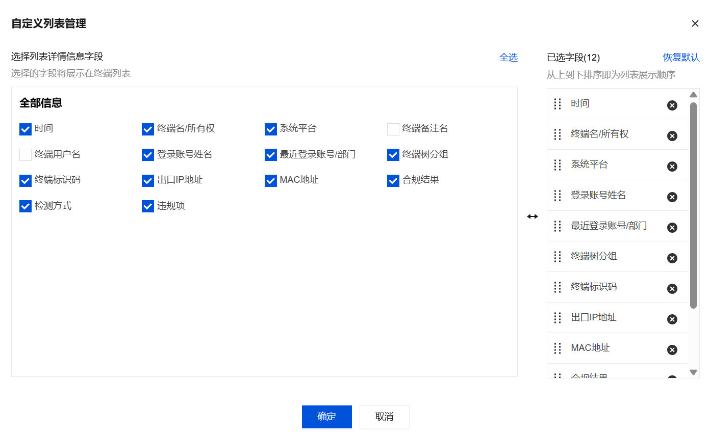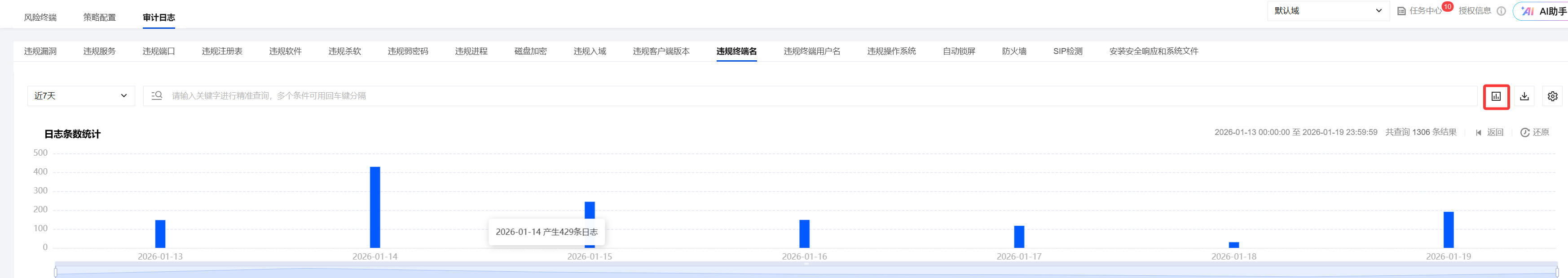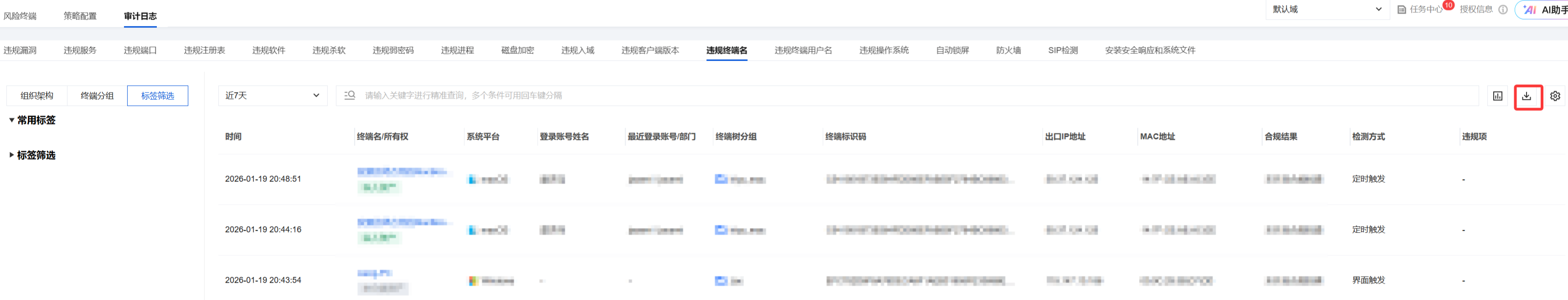 1. 登录 iOA 零信任管理平台控制台,在左侧导航栏,选择终端管控 > 合规检测 > 审计日志。
